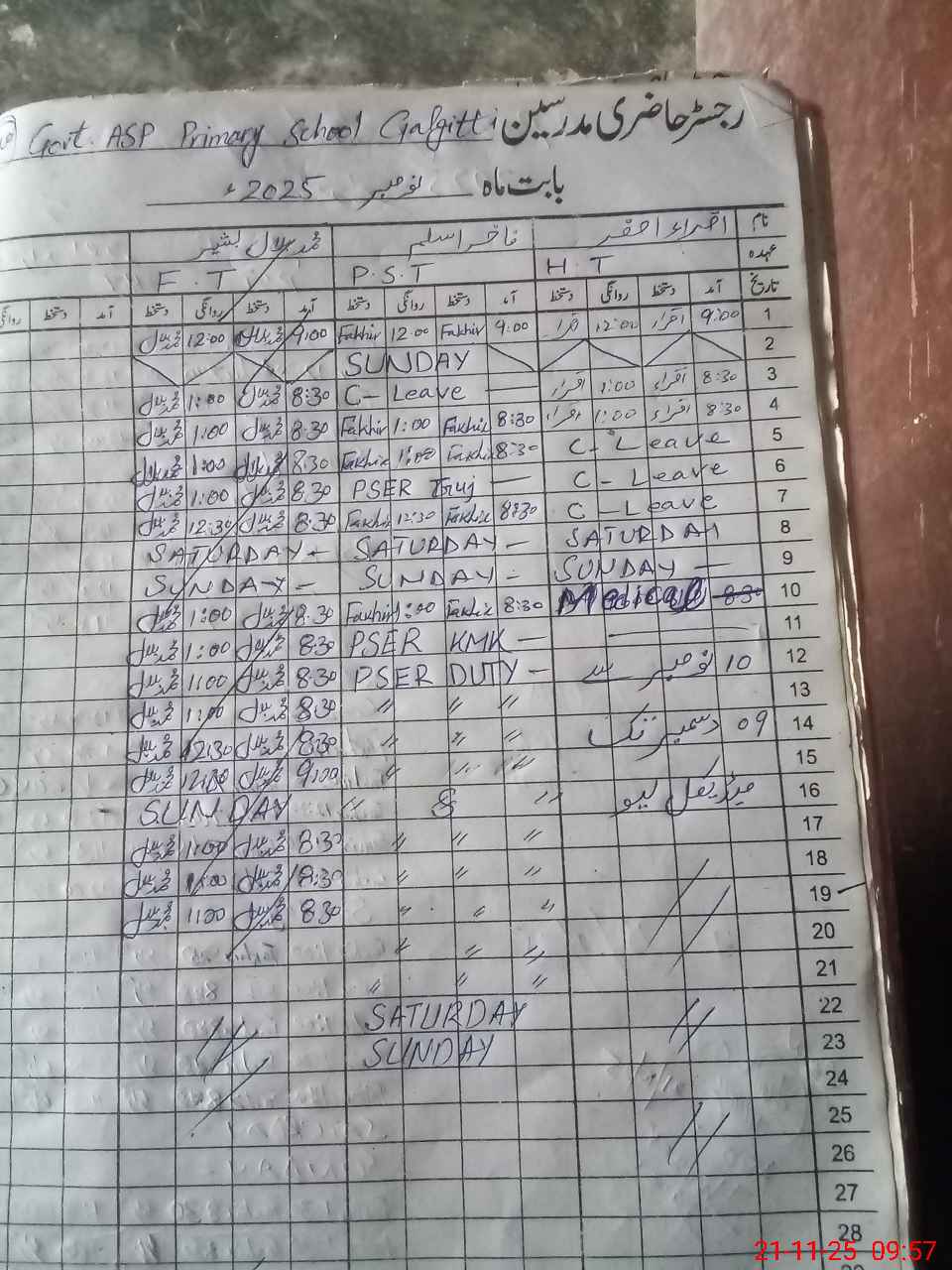 | 34**** | Fa**** As**** | PST | Regular | 0 | 0 | 0 | 0 | 0 | 0 | 0 | 0 | 0 | Absent (Un-Authorized) |