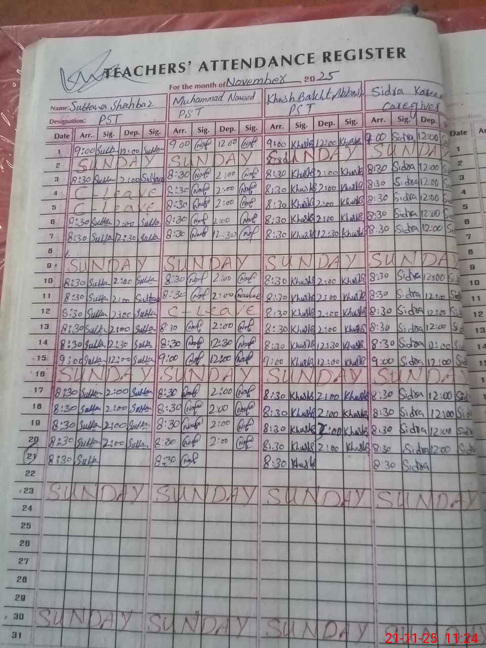 | CNIC | Full Name | Designation | R/C | Absence During Last Calender Month |