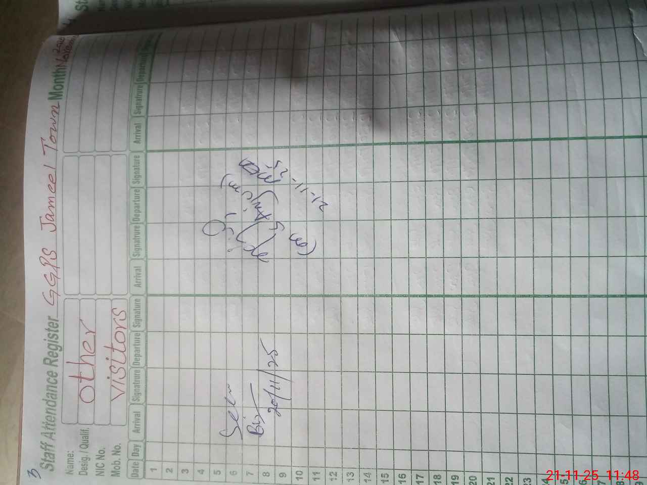 | CNIC | Full Name | Designation | R/C | Absence During Last Calender Month |