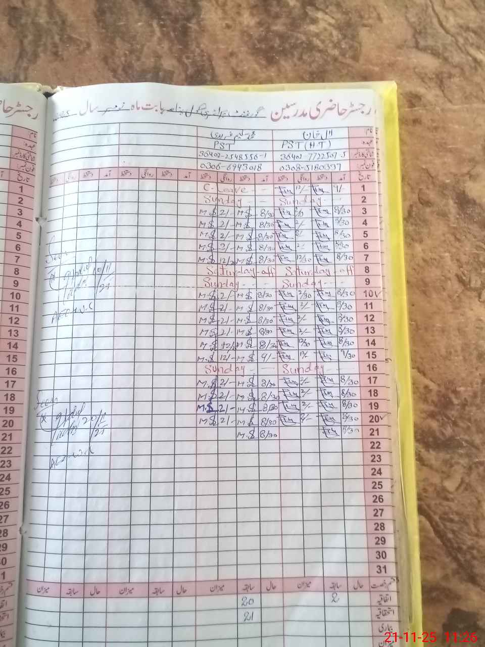 | CNIC | Full Name | Designation | R/C | Absence During Last Calender Month |