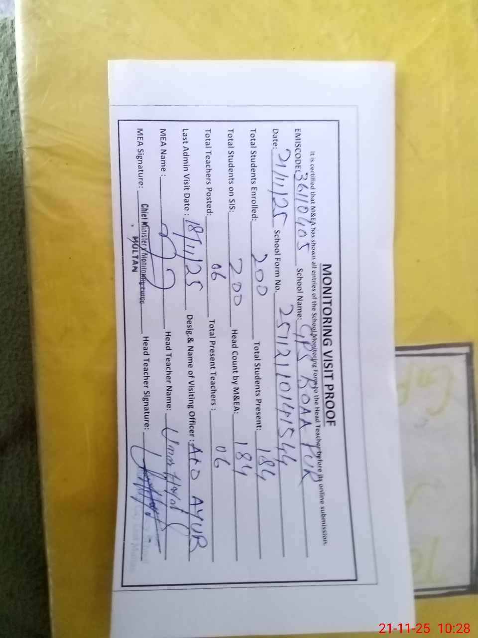 | EMIS Code: 36110405 | Name of School: GPS BUAA PUR KHANEWAL ROAD | |||