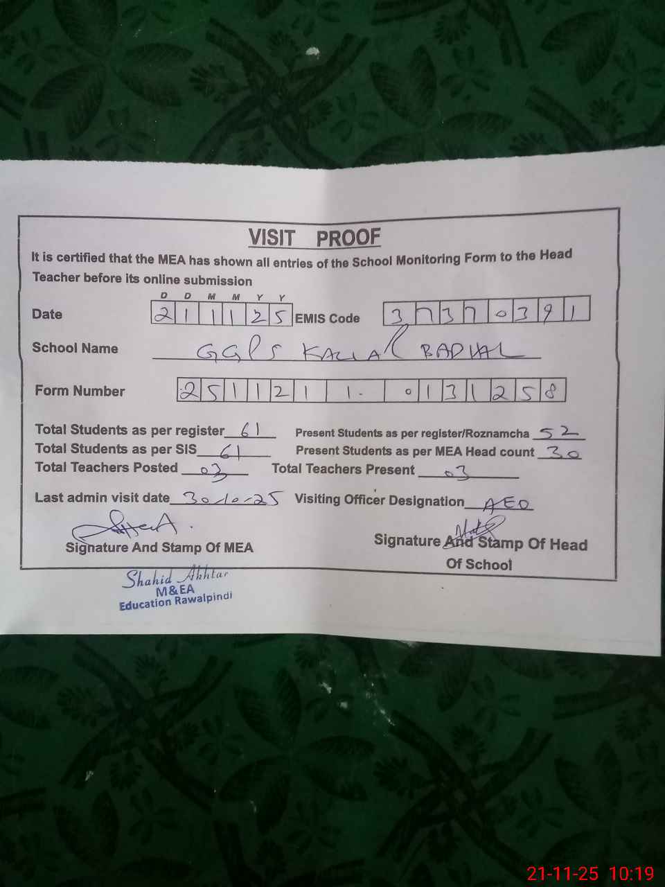 | EMIS Code: 37370391 | Name of School: GGPS KALLAR BADHAL | |||
