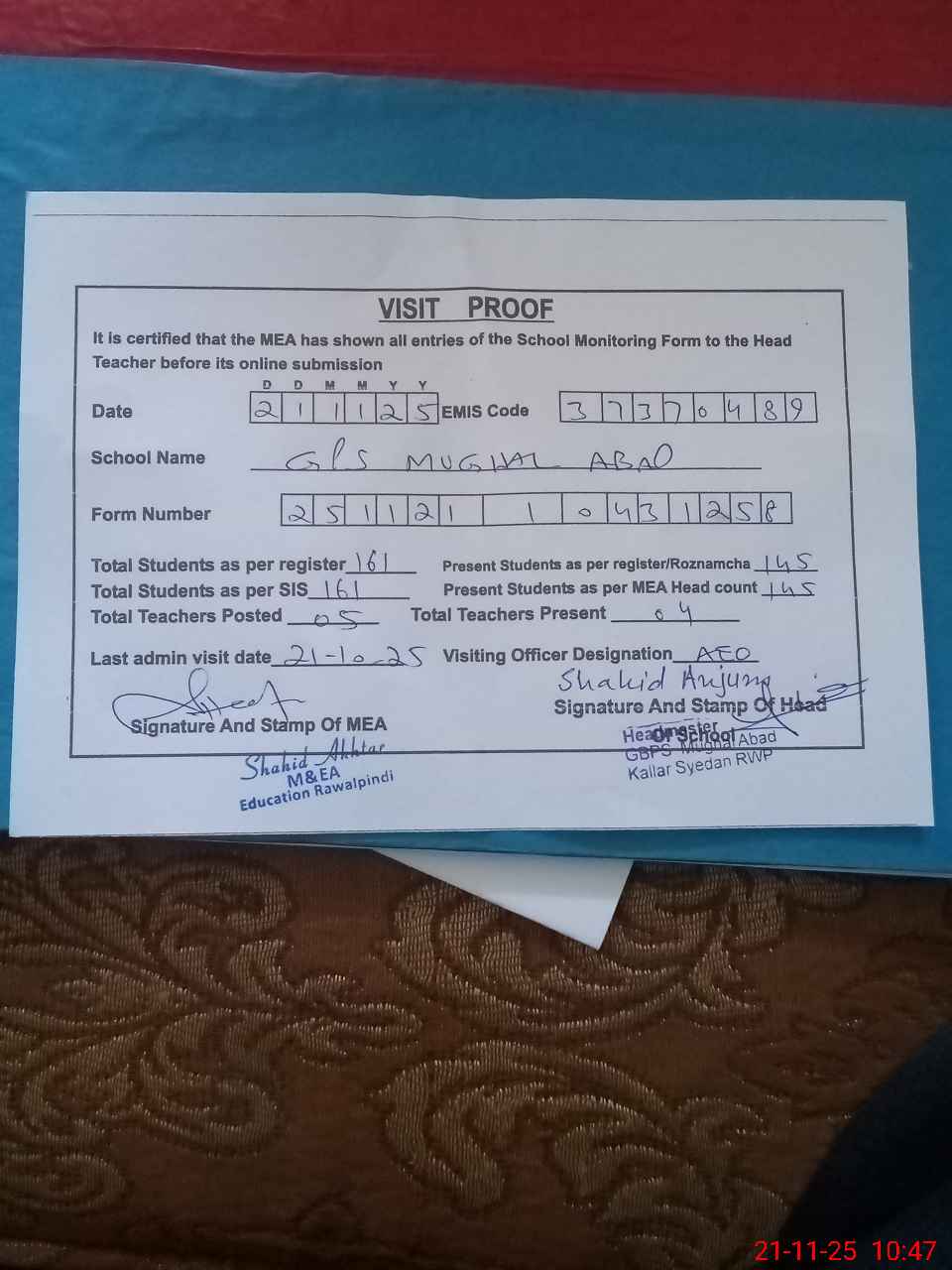 | EMIS Code: 37370489 | Name of School: GPS MUGHAL ABAD | |||
