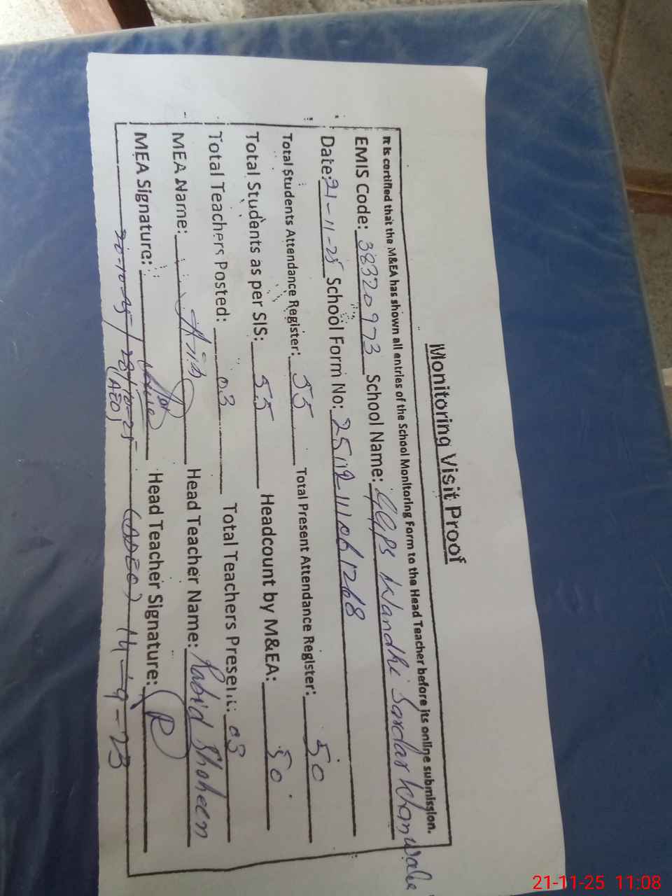 | EMIS Code: 38320973 | Name of School: GGPS WANDHI SARDAR KHAN WALI | |||