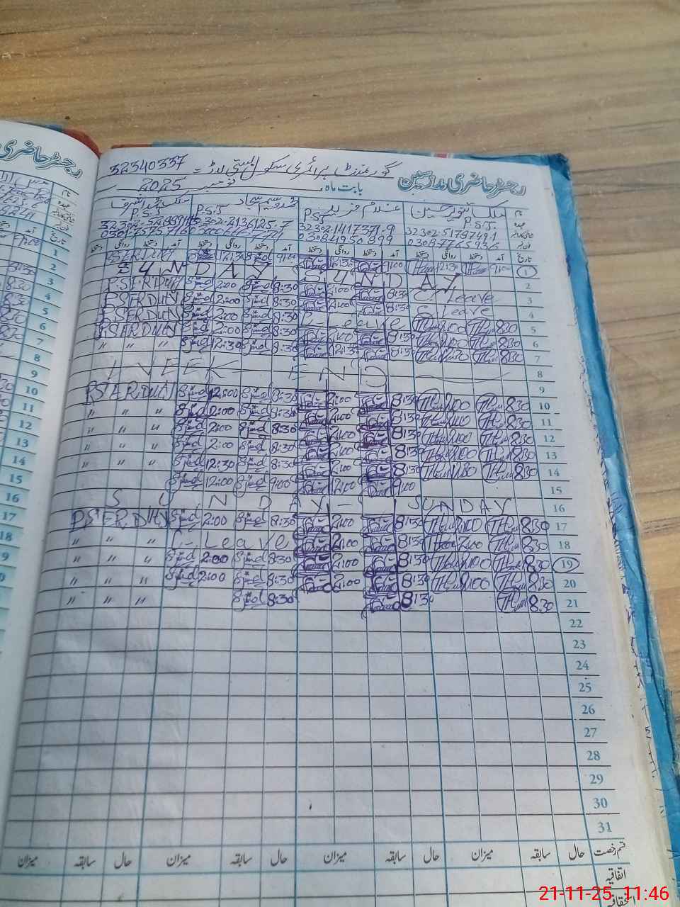 | CNIC | Full Name | Designation | R/C | Absence During Last Calender Month |