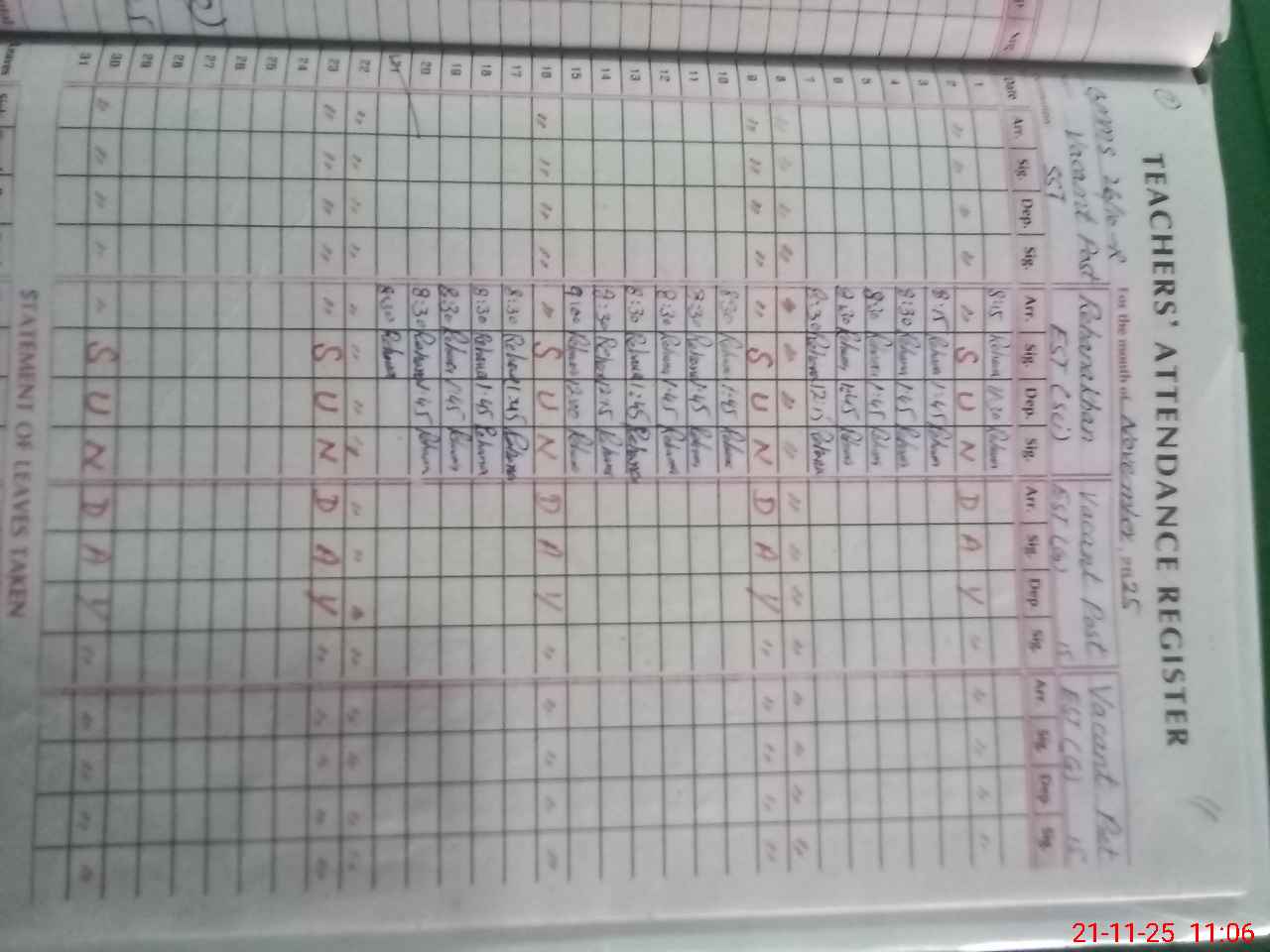 | CNIC | Full Name | Designation | R/C | Absence During Last Calender Month |