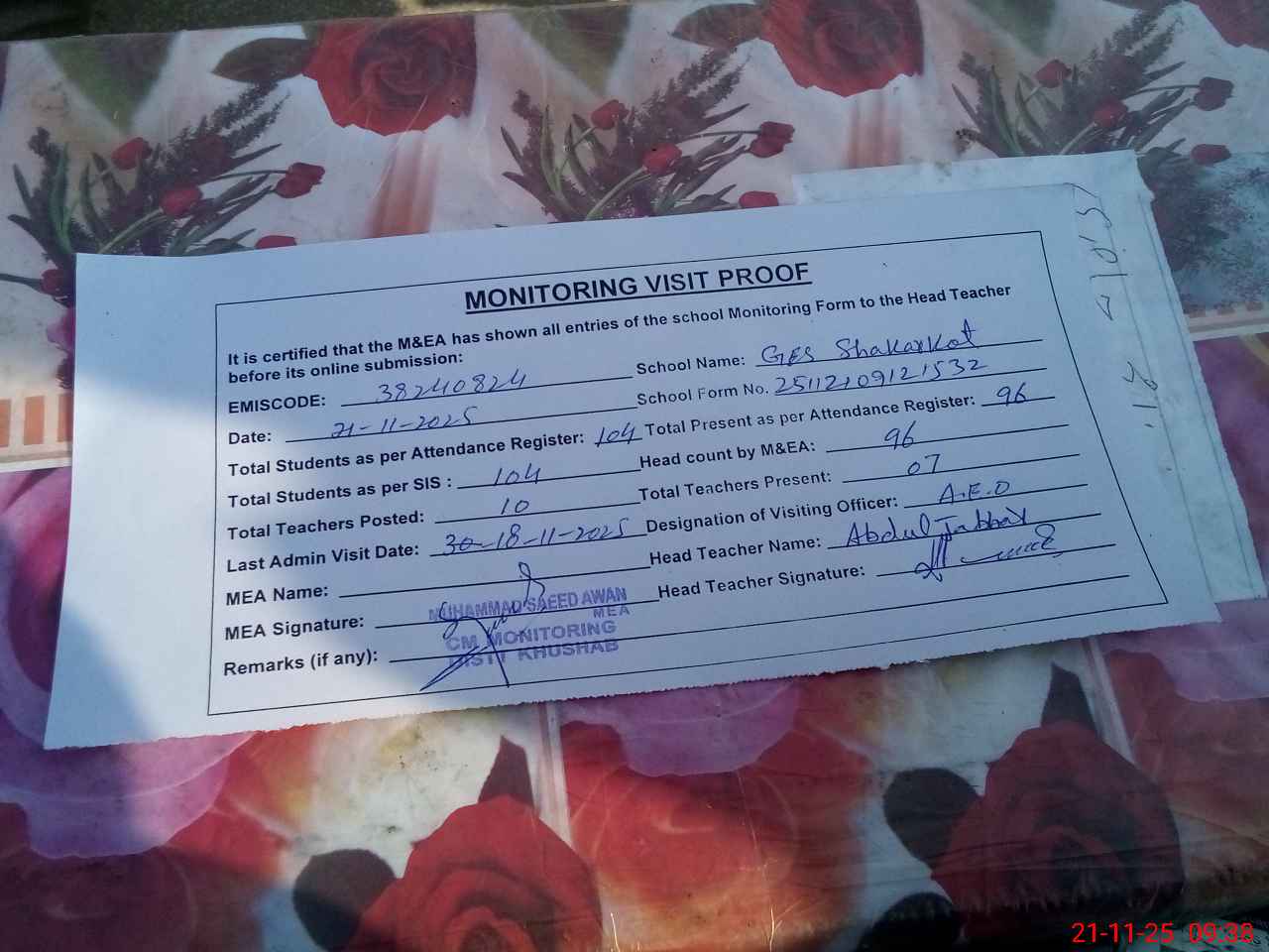 | EMIS Code: 38240824 | Name of School: GES SHAKAR KOT | |||