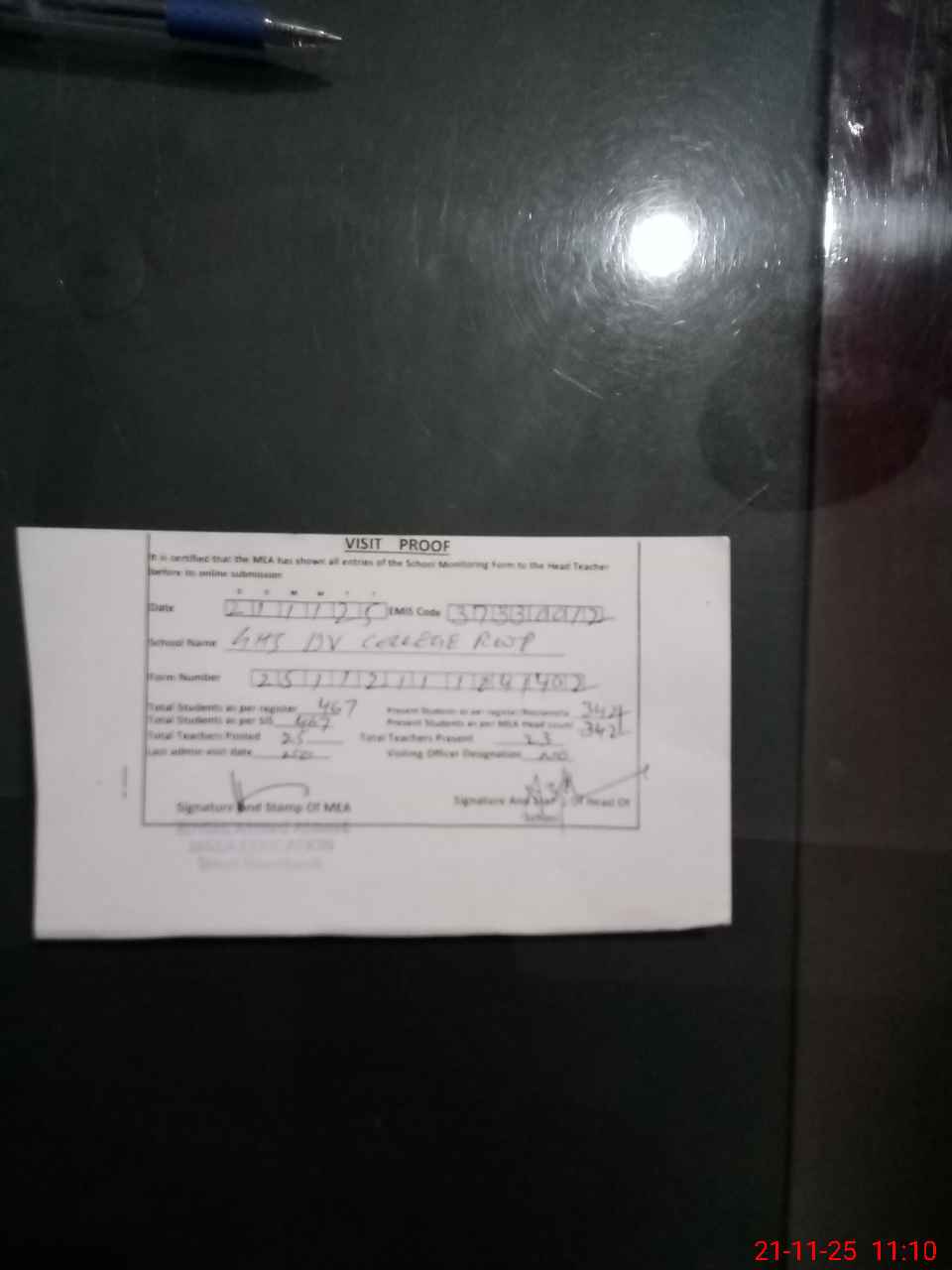 | Attendance Register | Head Teacher | MEA with School | Visit Proof |