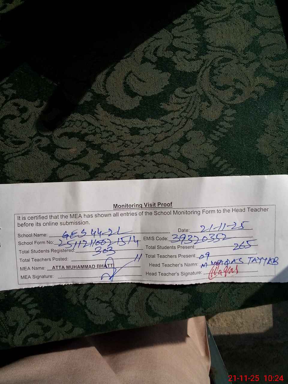 | Remarks (Use Separate Page if Required): Last admin visit by AEO on 12 November 2025 | |||||