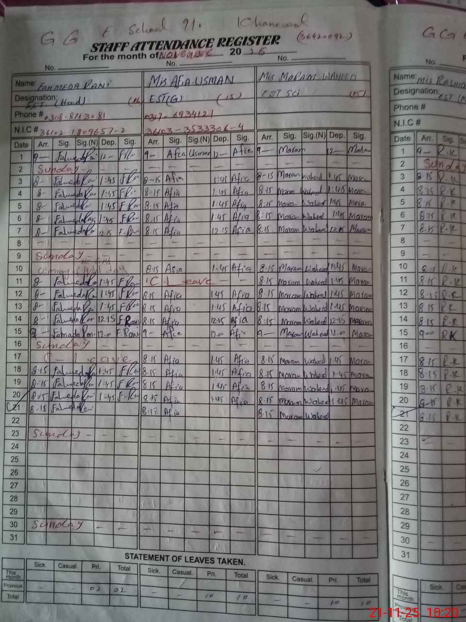 | Name: Fe**** Ra**** Designation: (School Headmaster's/Headmistress's) SST (G) Phone/Cell Number: 03**** |