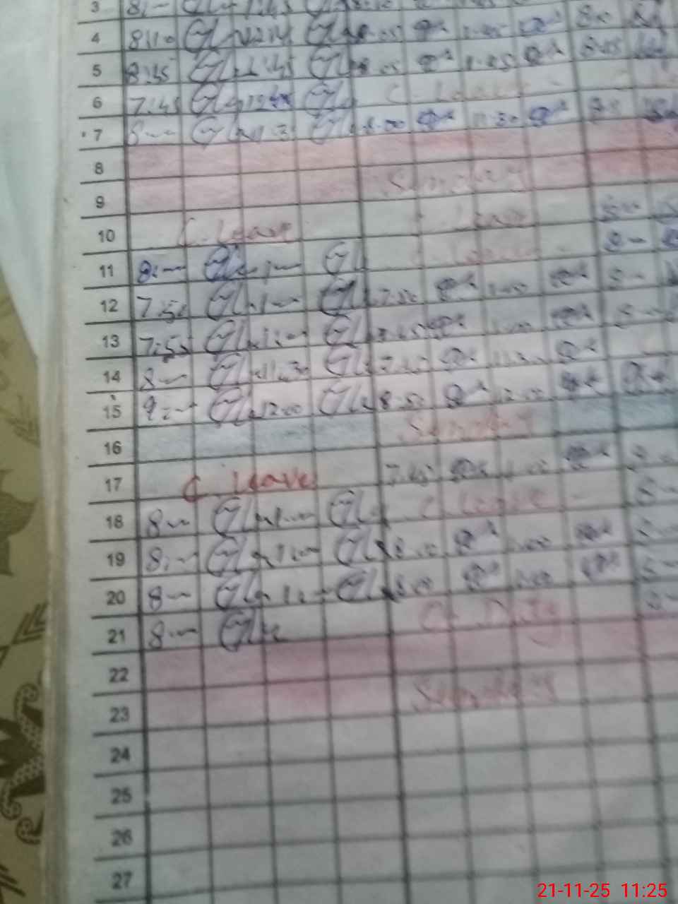 | 37**** | Ay**** Ya**** | EST | Regular | 0 | 0 | 0 | 0 | 0 | 0 | 0 | 0 | 0 | Exam Duty |