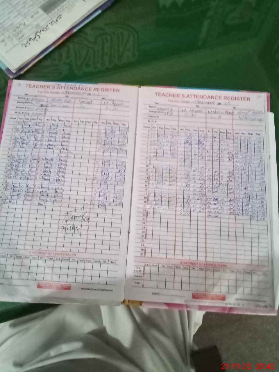 | CNIC | Full Name | Designation | R/C | Absence During Last Calender Month |