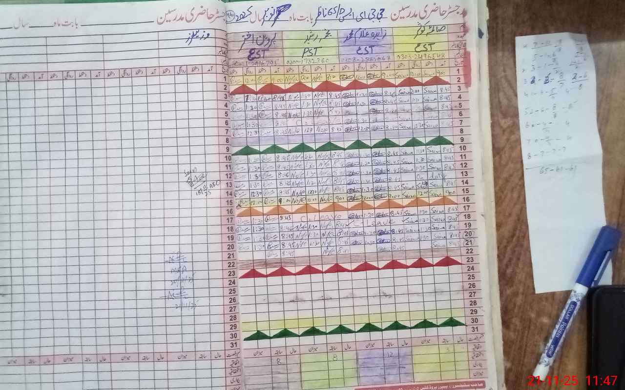 | CNIC | Full Name | Designation | R/C | Absence During Last Calender Month |