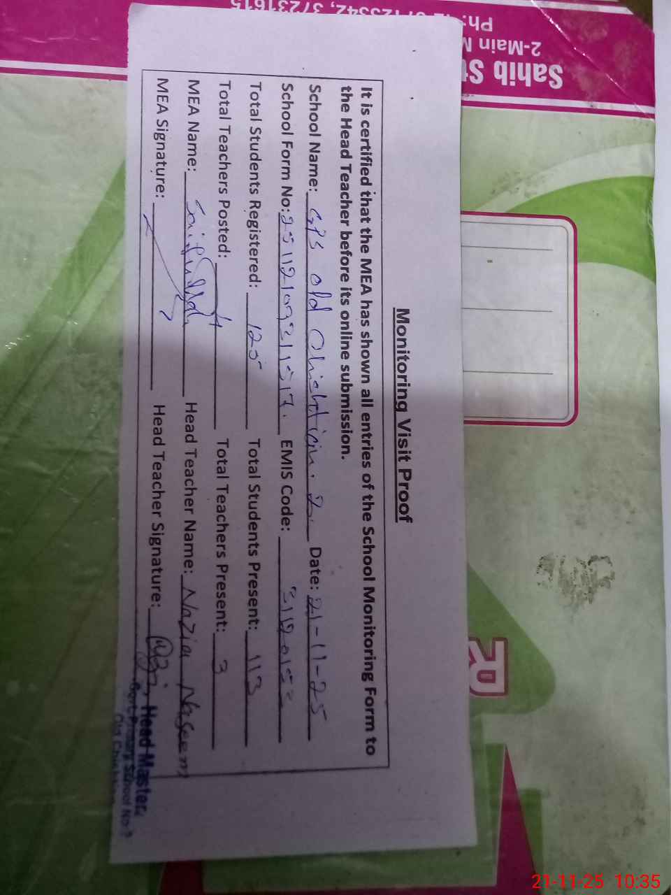 | EMIS Code: 31120153 | Name of School: GPS OLD CHISHTIAN NO. 2 | |||