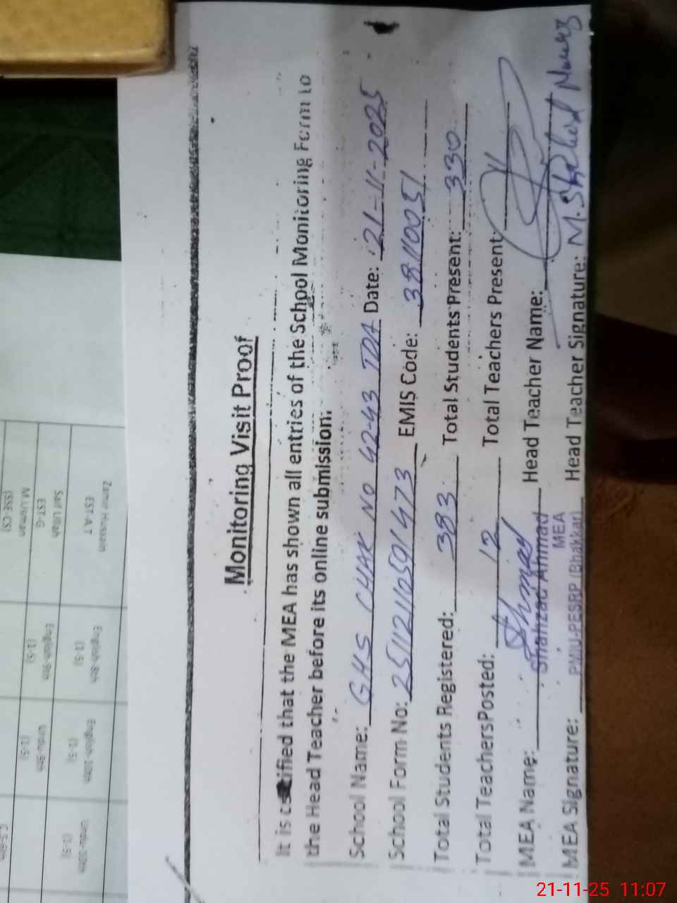 | EMIS Code: 38110051 | Name of School: GHS CHAK NO 42-43 TDA | |||