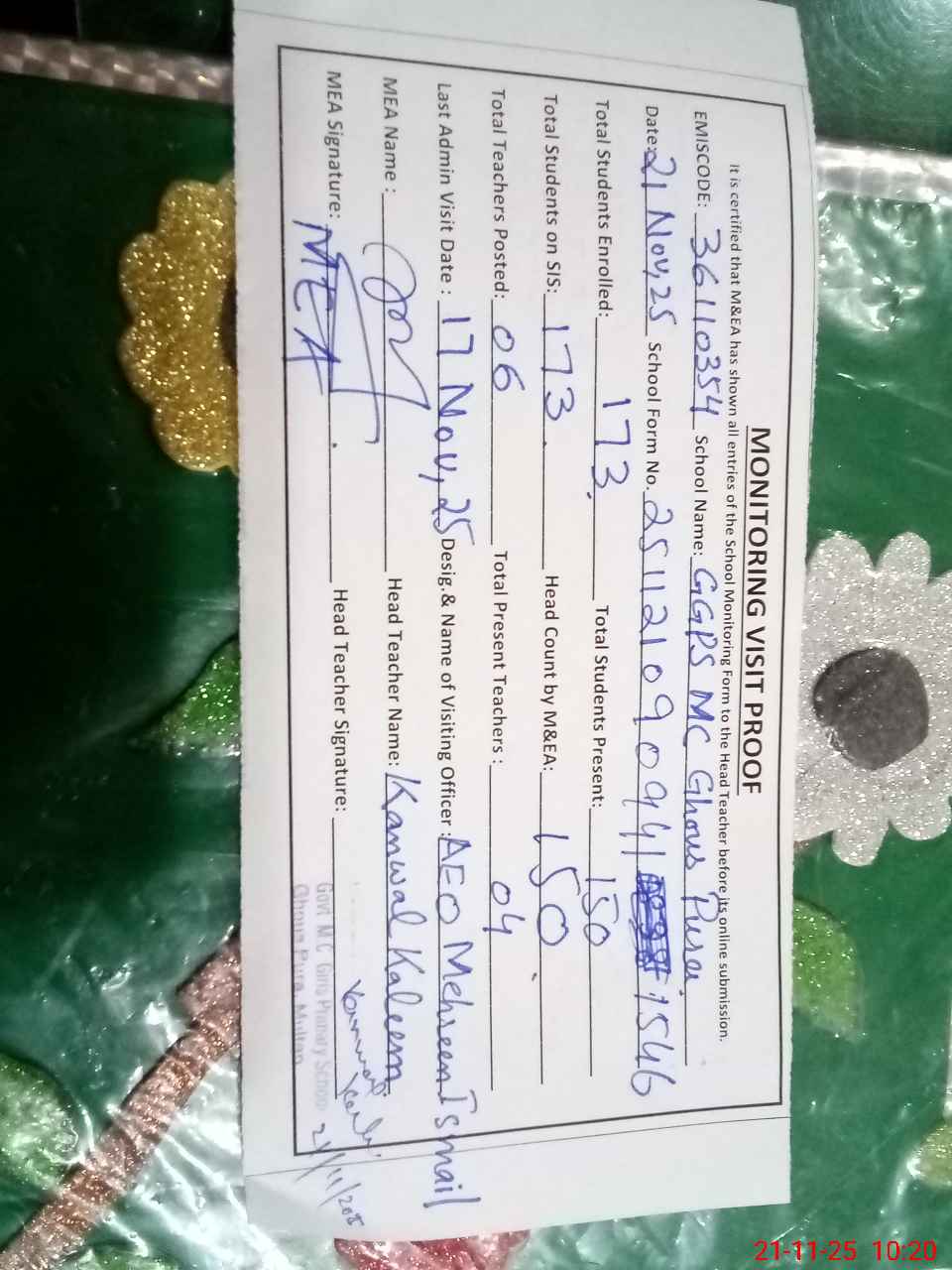 | EMIS Code: 36110354 | Name of School: GGPS MC GHOUS PURA | |||
