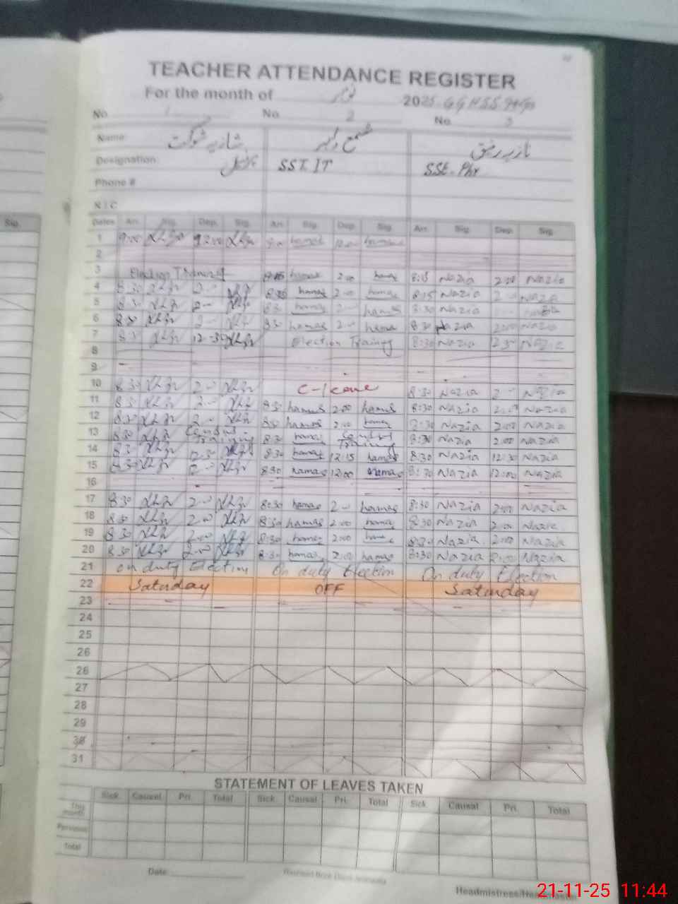 | 42**** | Uz**** Sh**** | ESE Physical Education | Regular | 0 | 0 | 0 | 0 | 0 | 0 | 0 | 0 | 0 | Casual |