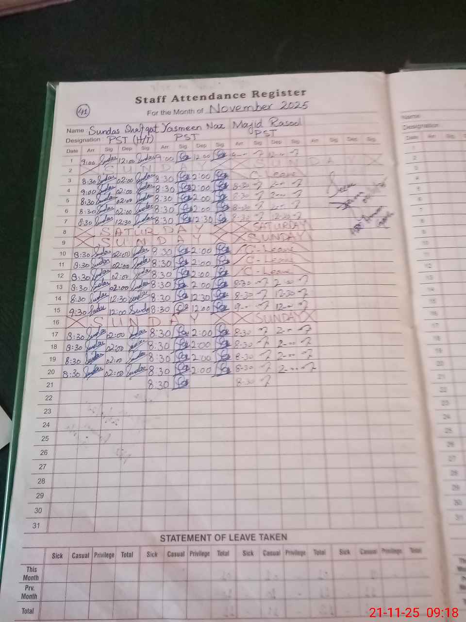 | Name: SU**** SH**** Designation: (School Headmaster's/Headmistress's) PST Phone/Cell Number: 03**** |