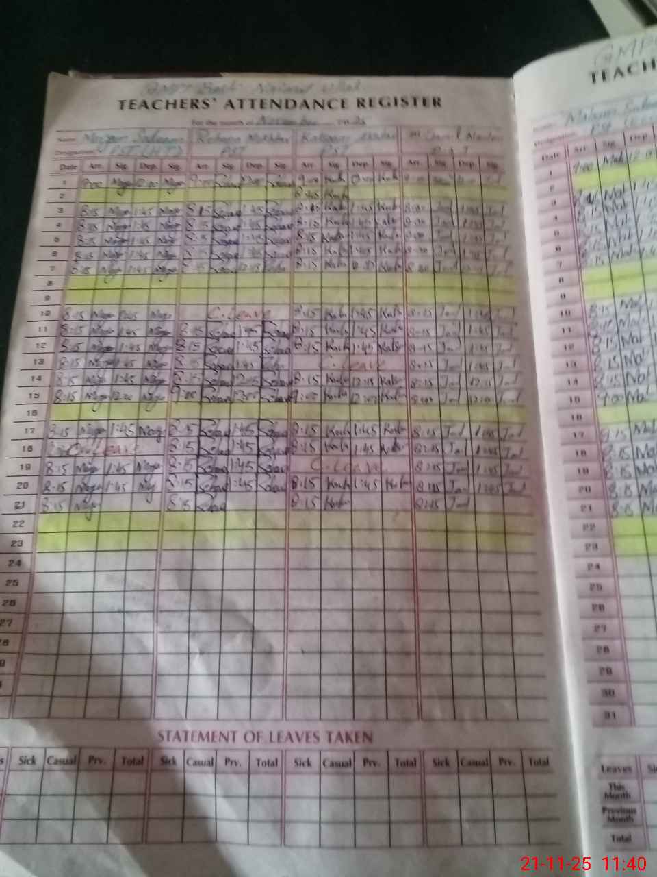 Leave Type | Remarks for Today (Leave,Training, Exam,Absent,Late, Other Duty) |