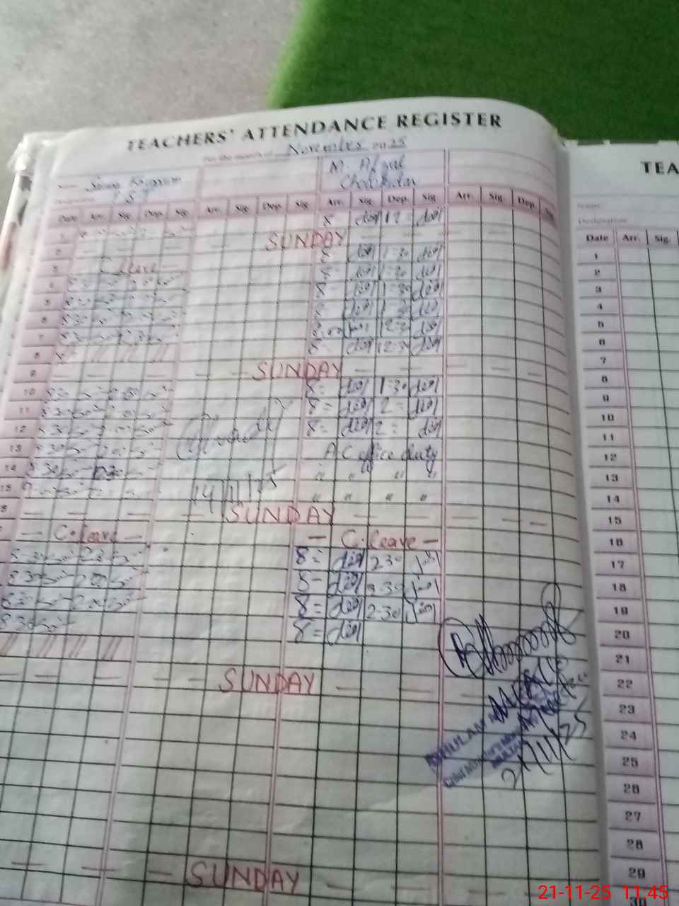 | CNIC | Full Name | Designation | R/C | Absence During Last Calender Month |