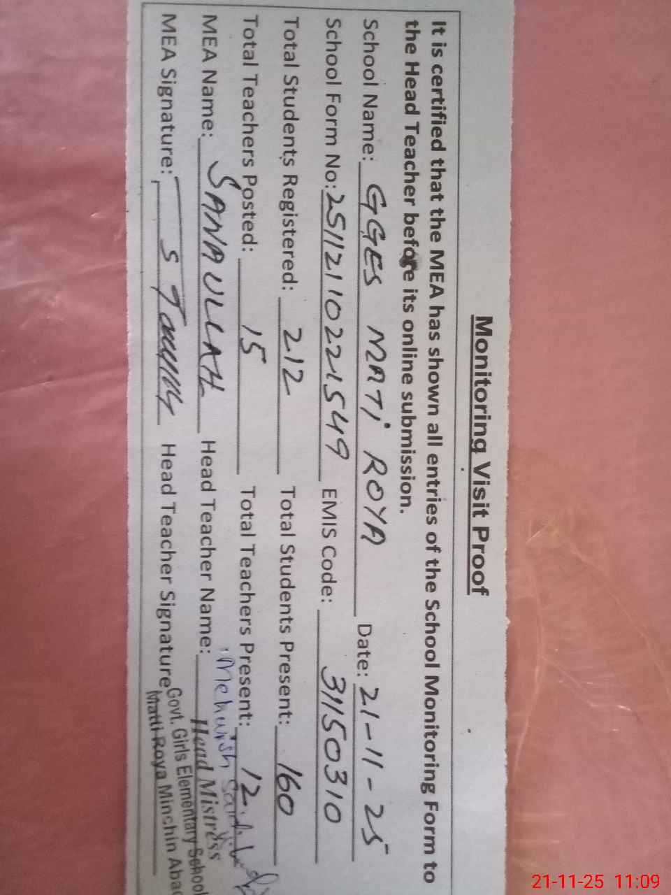 | EMIS Code: 31150310 | Name of School: GGES MATI ROYA | |||