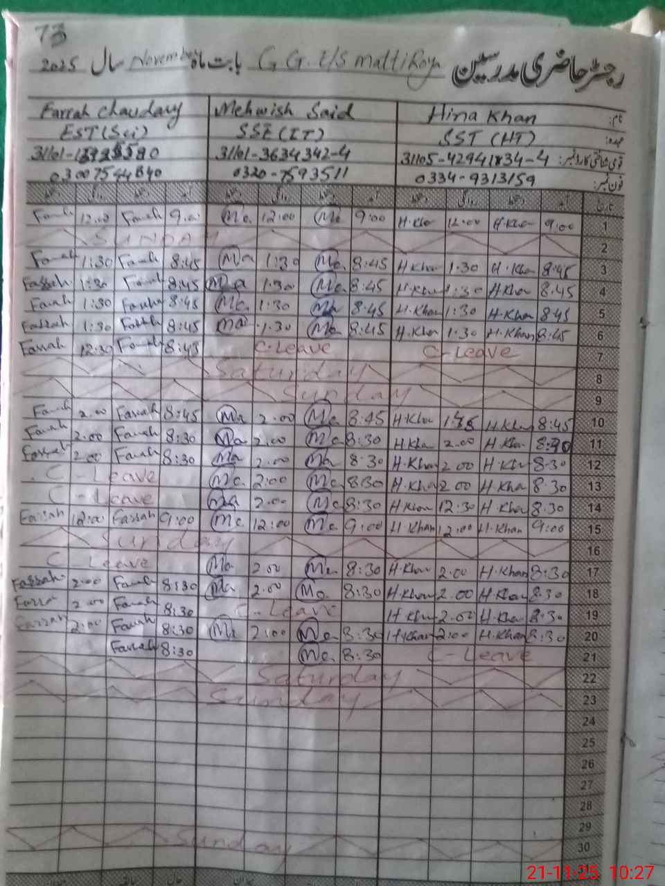 | Name: HI**** KH**** Designation: (School Headmaster's/Headmistress's) SST Phone/Cell Number: 03**** |