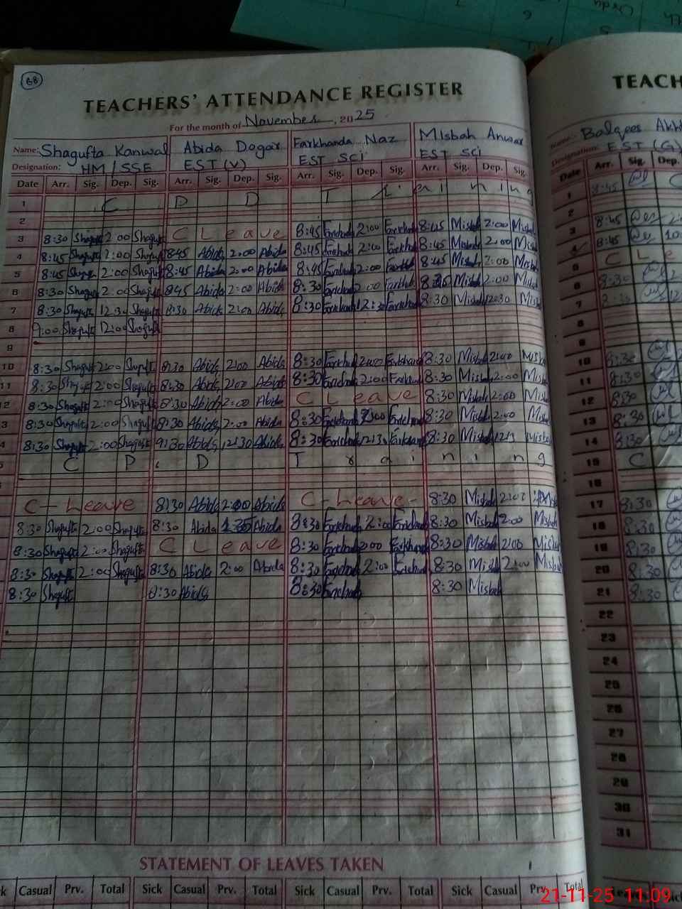 | CNIC | Full Name | Designation | R/C | Absence During Last Calender Month |
