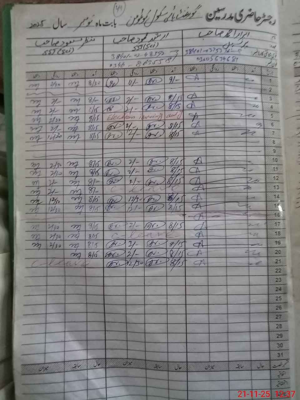 | Name: Ib**** Ah**** Designation: (School Headmaster's/Headmistress's) Principal Phone/Cell Number: 03**** |