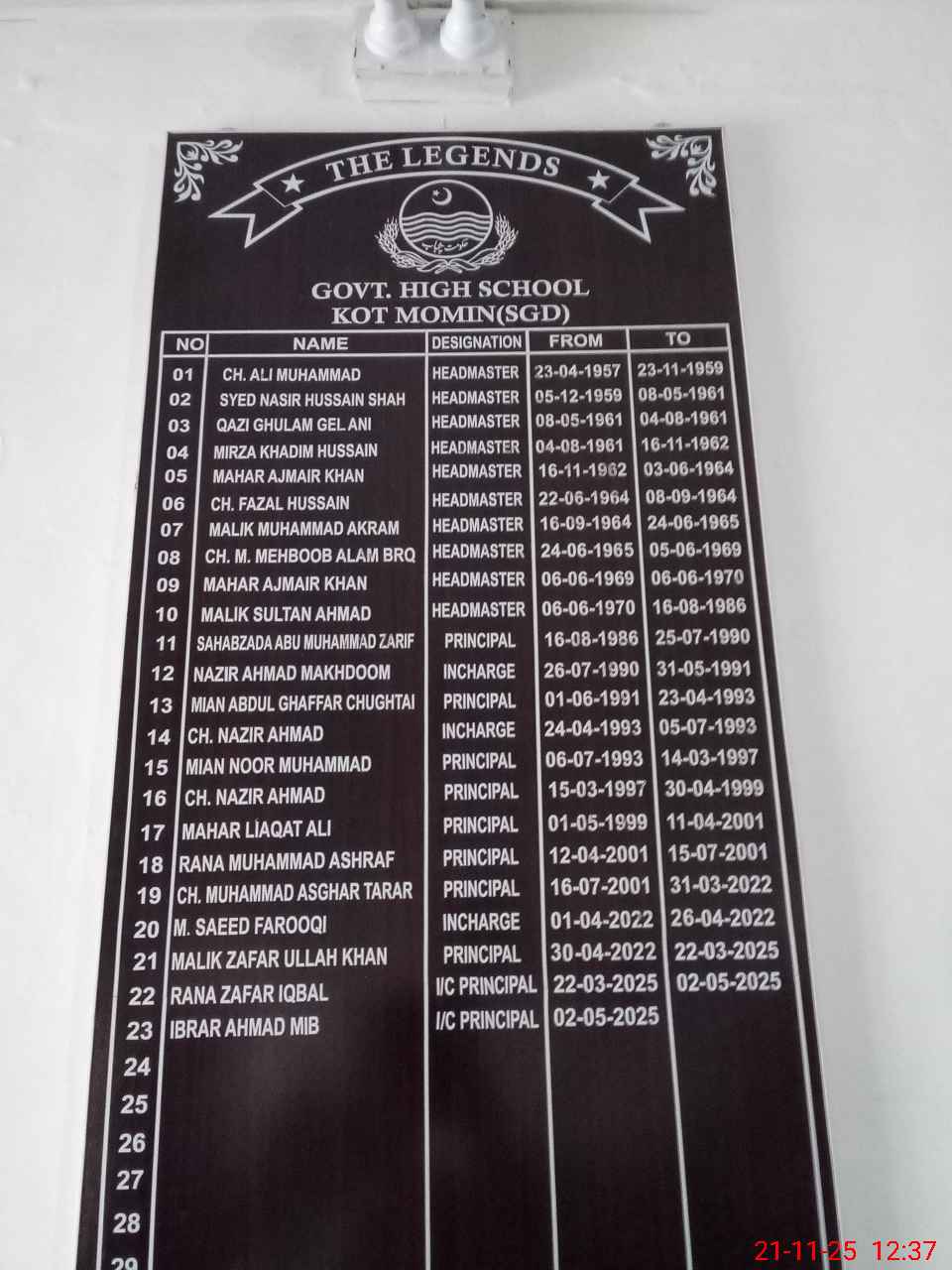 | District: SARGODHA | Tehsil: KOT MOMIN | Markaz: SECONDARY-WING | Level: High | |