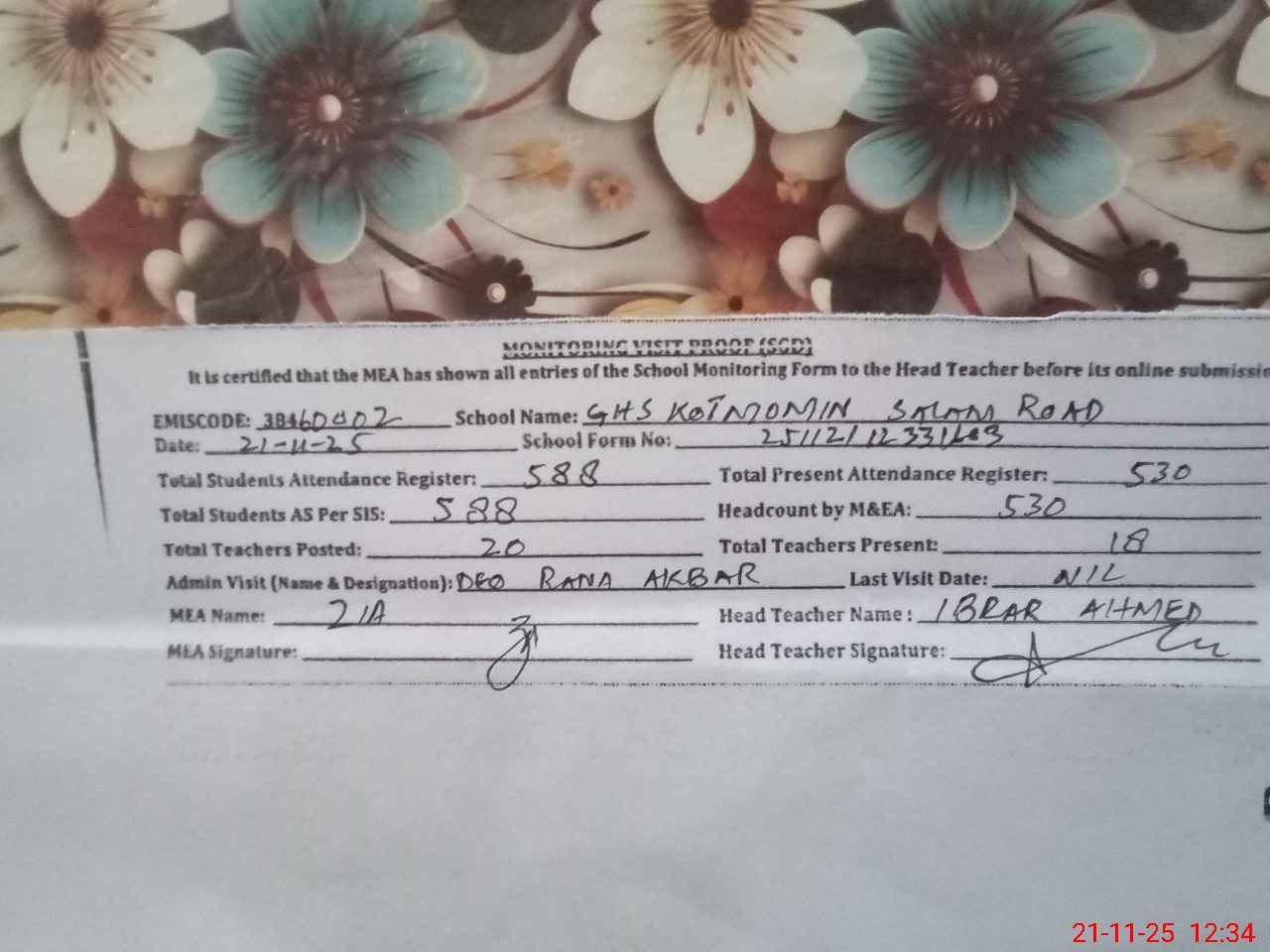 | EMIS Code: 38460002 | Name of School: GHS KOT MOMIN SALAM ROAD | |||