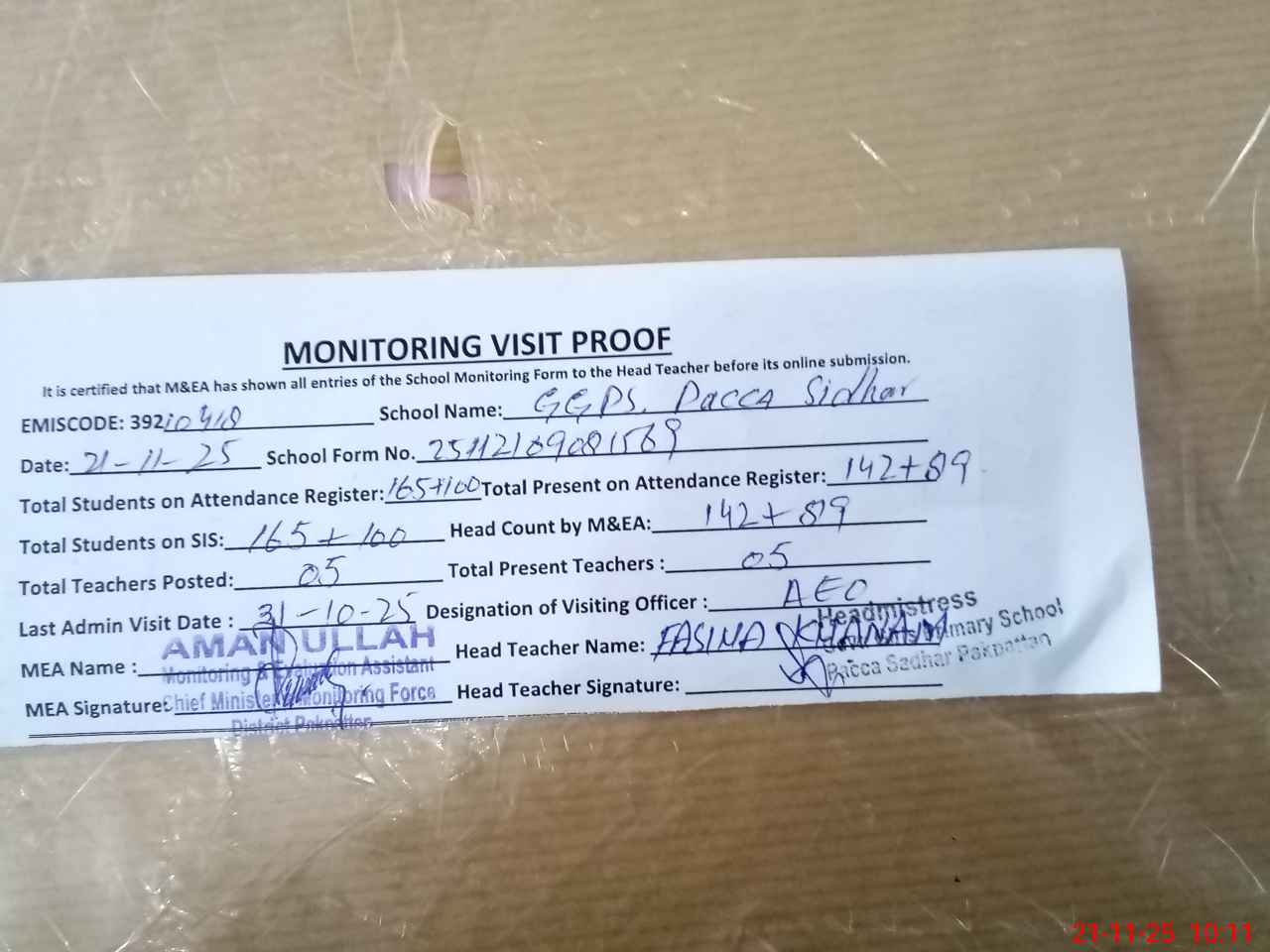 | EMIS Code: 39210418 | Name of School: GGPS PACCA SADHAR | |||