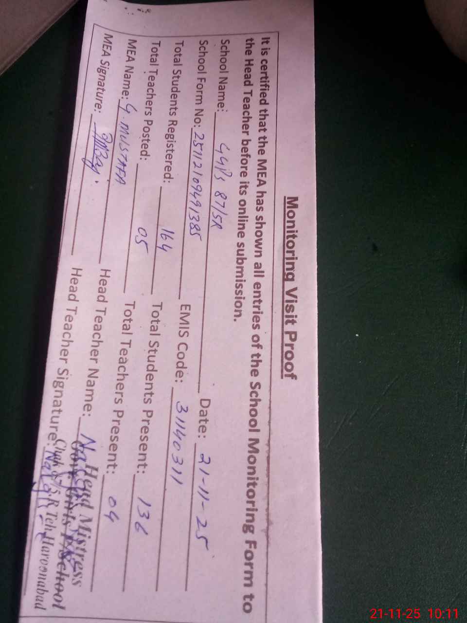 | Remarks (Use Separate Page if Required): Teacher Sonia Zia shown on maternity leave since 22 September 2025 but her approved leave not available | |||||