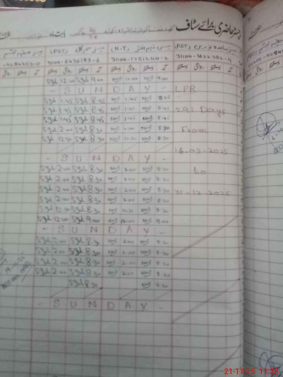 | CNIC | Full Name | Designation | R/C | Absence During Last Calender Month |