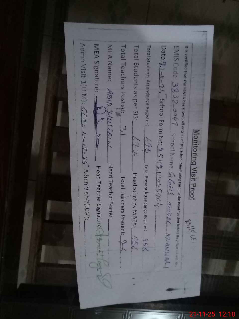 | Certified that this School was Inspected by the Undersigned MEA/DMO Today and the Information Stated Above is as Per Record. | |||||