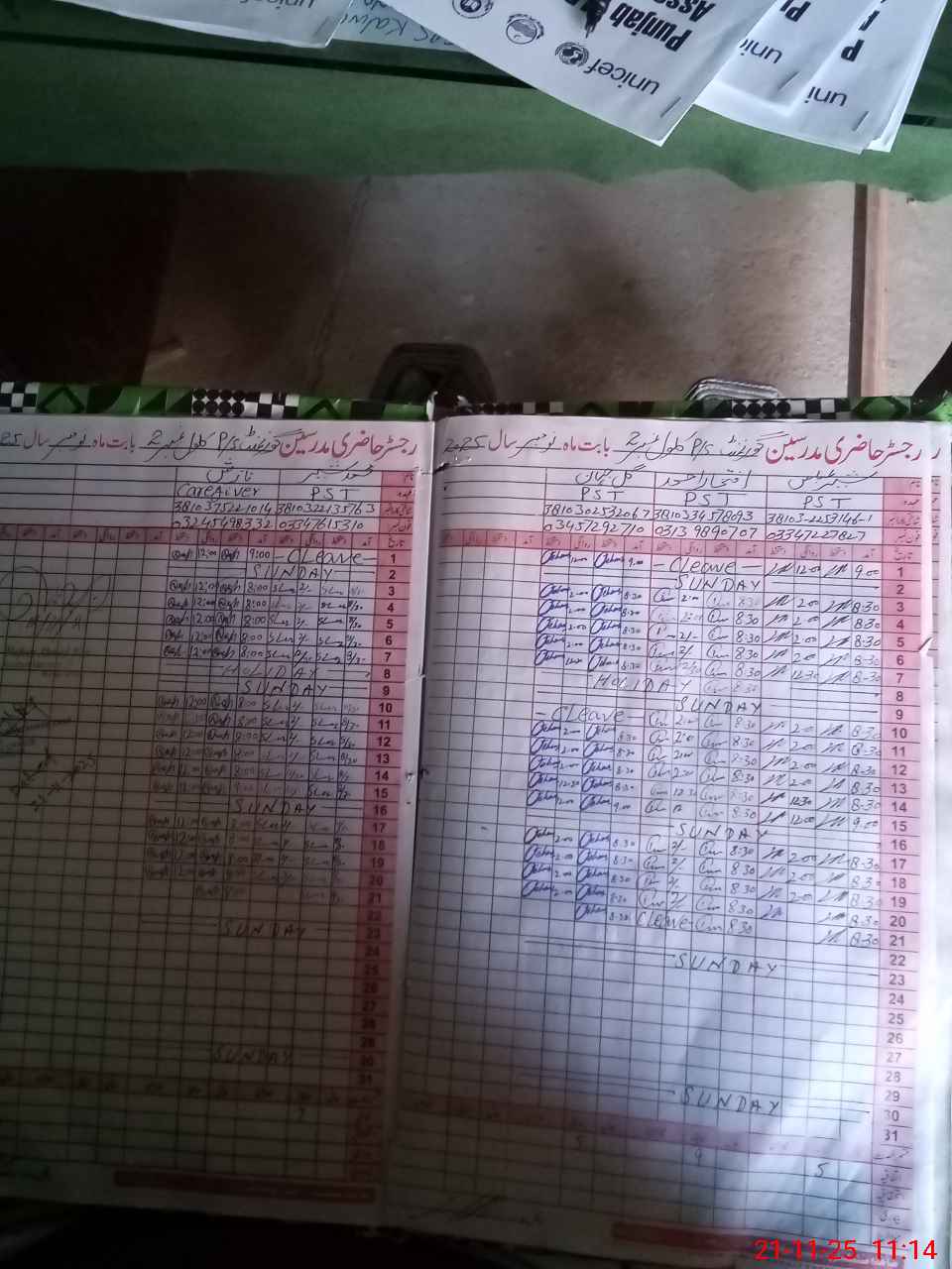 | CNIC | Full Name | Designation | R/C | Absence During Last Calender Month |
