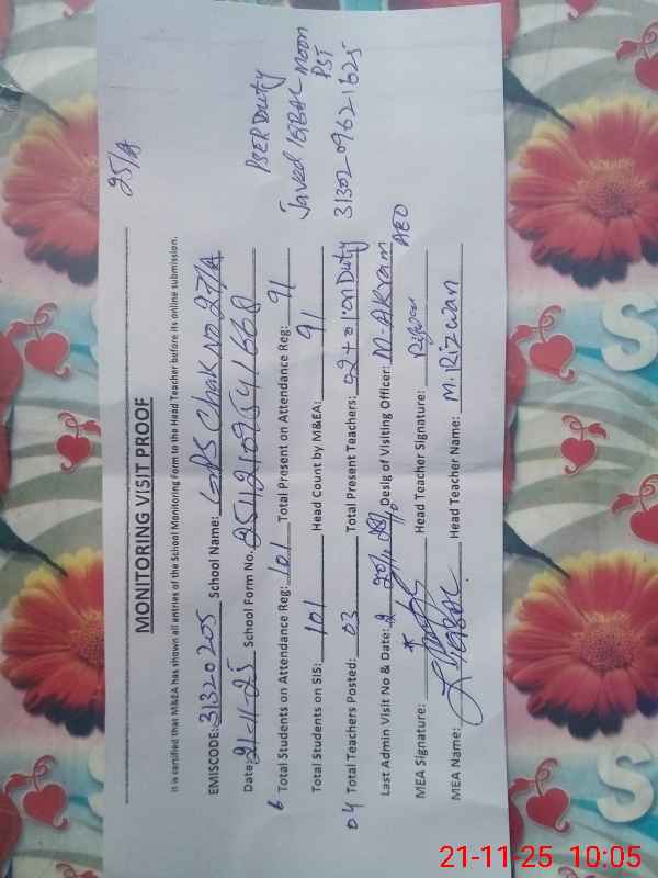 | EMIS Code: 31320205 | Name of School: GPS CHAK 27/A | |||