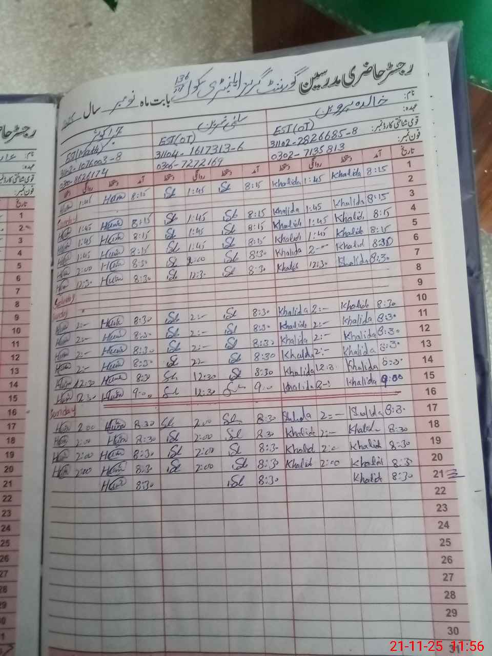 | Name: KH**** PE**** Designation: (School Headmaster's/Headmistress's) E S T OT Phone/Cell Number: 03**** |