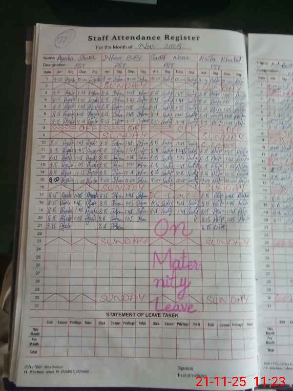 | Leave | Duty | Absent | Maternity | Medical | Ex- Pak |