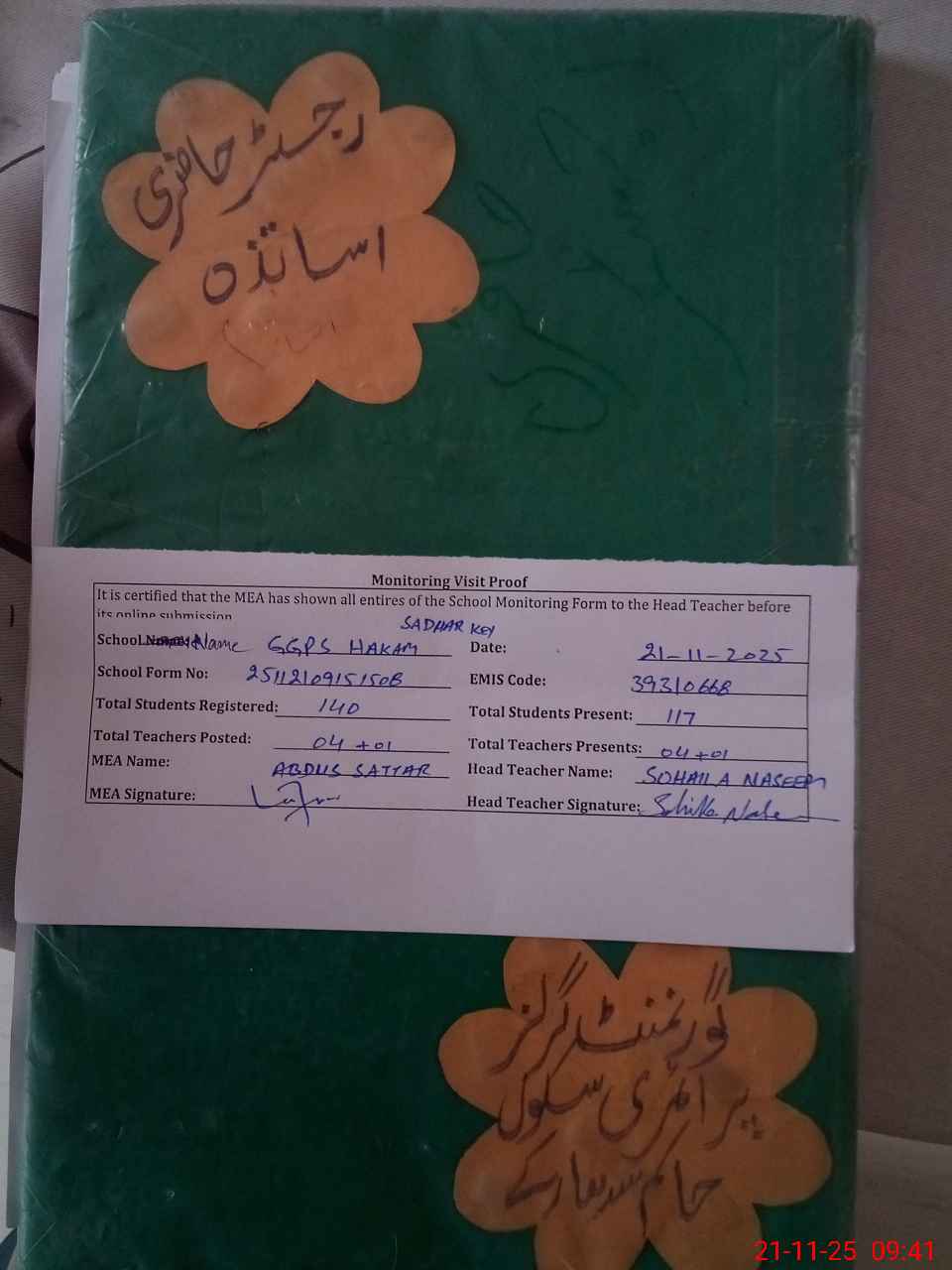 | EMIS Code: 39310668 | Name of School: GGPS HAKAM SADHAR KEY | |||