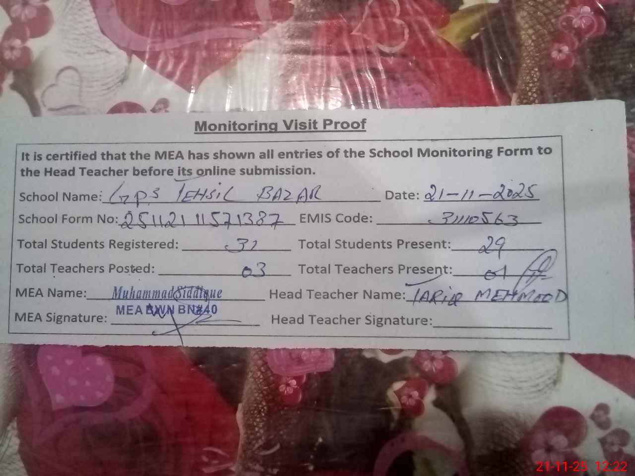 | EMIS Code: 31110563 | Name of School: GPS TEHSIL BAZAR | |||