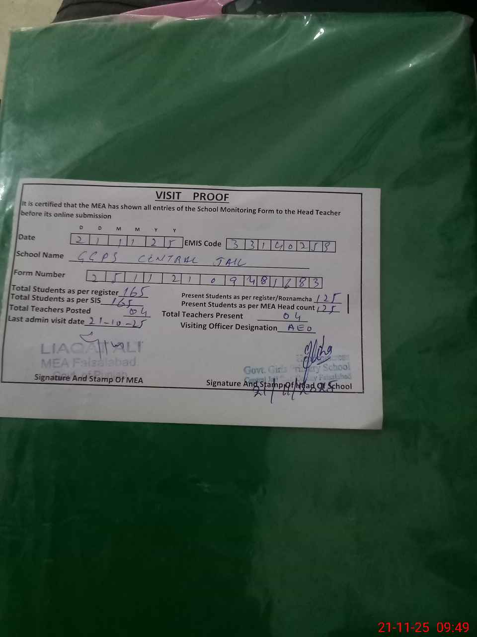 | EMIS Code: 33140259 | Name of School: GGPS CENTERAL JAIL | |||