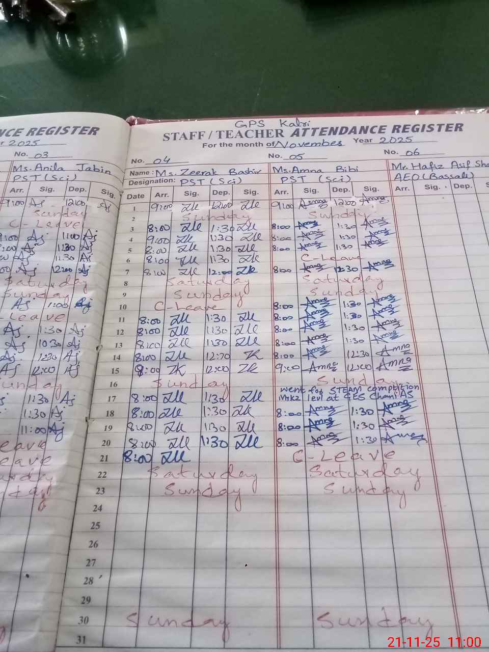 | CNIC | Full Name | Designation | R/C | Absence During Last Calender Month |