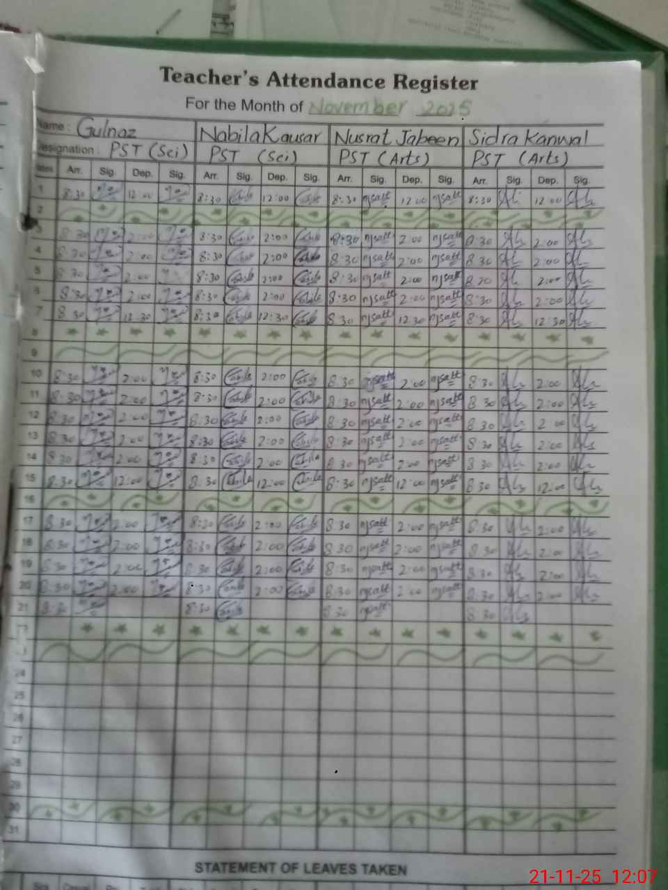 | CNIC | Full Name | Designation | R/C | Absence During Last Calender Month |