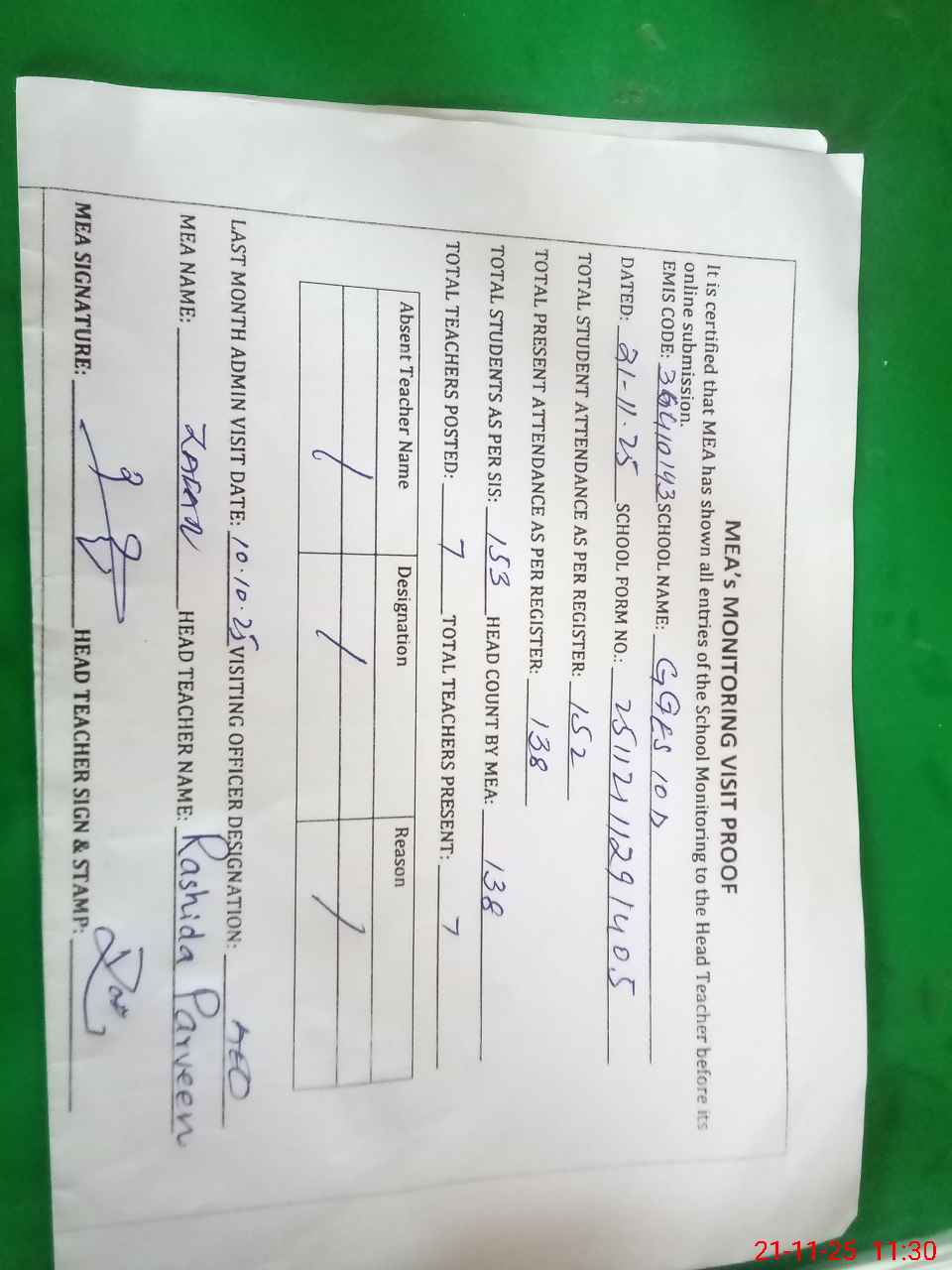 | EMIS Code: 36410143 | Name of School: GGES 10/D, ABDUL HAKIM | |||