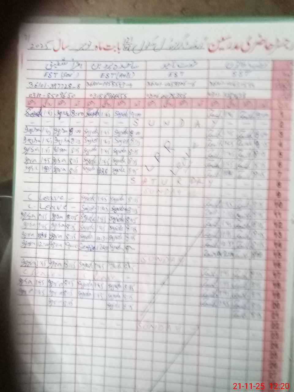 | CNIC | Full Name | Designation | R/C | Absence During Last Calender Month |