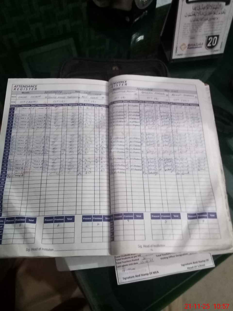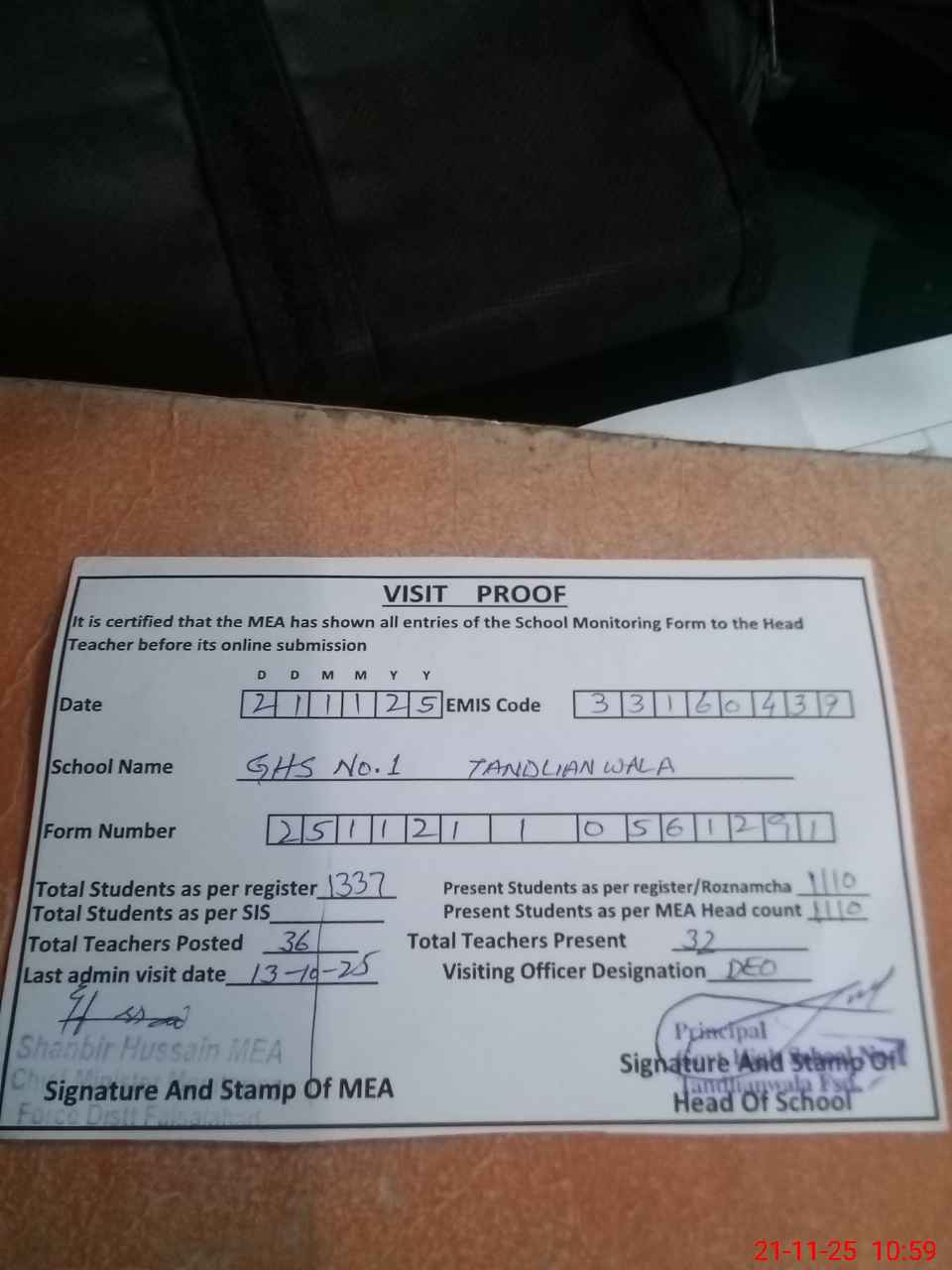 | Attendance Register | Head Teacher | MEA with School | Visit Proof |