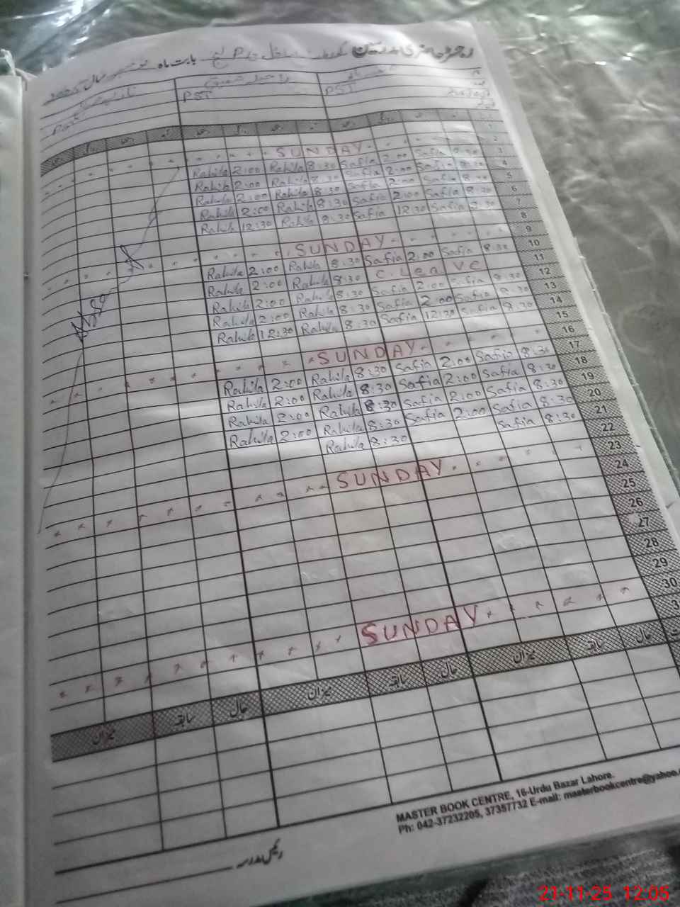| CNIC | Full Name | Designation | R/C | Absence During Last Calender Month |