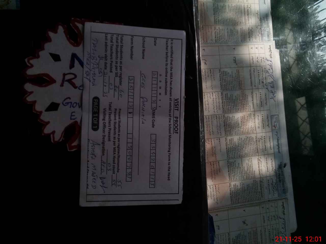 | Attendance Register | Head Teacher | MEA with School | Visit Proof |