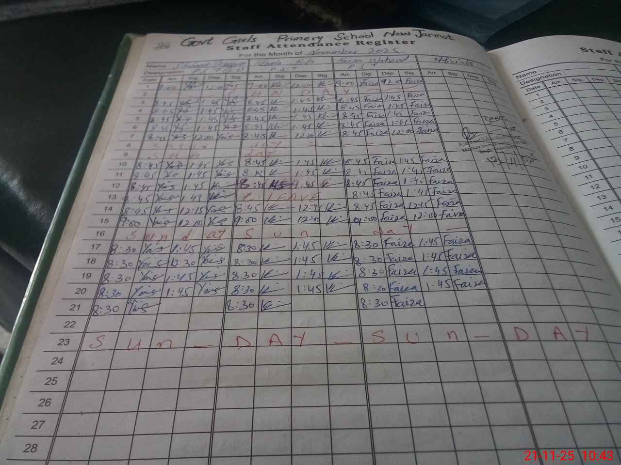 | CNIC | Full Name | Designation | R/C | Absence During Last Calender Month |