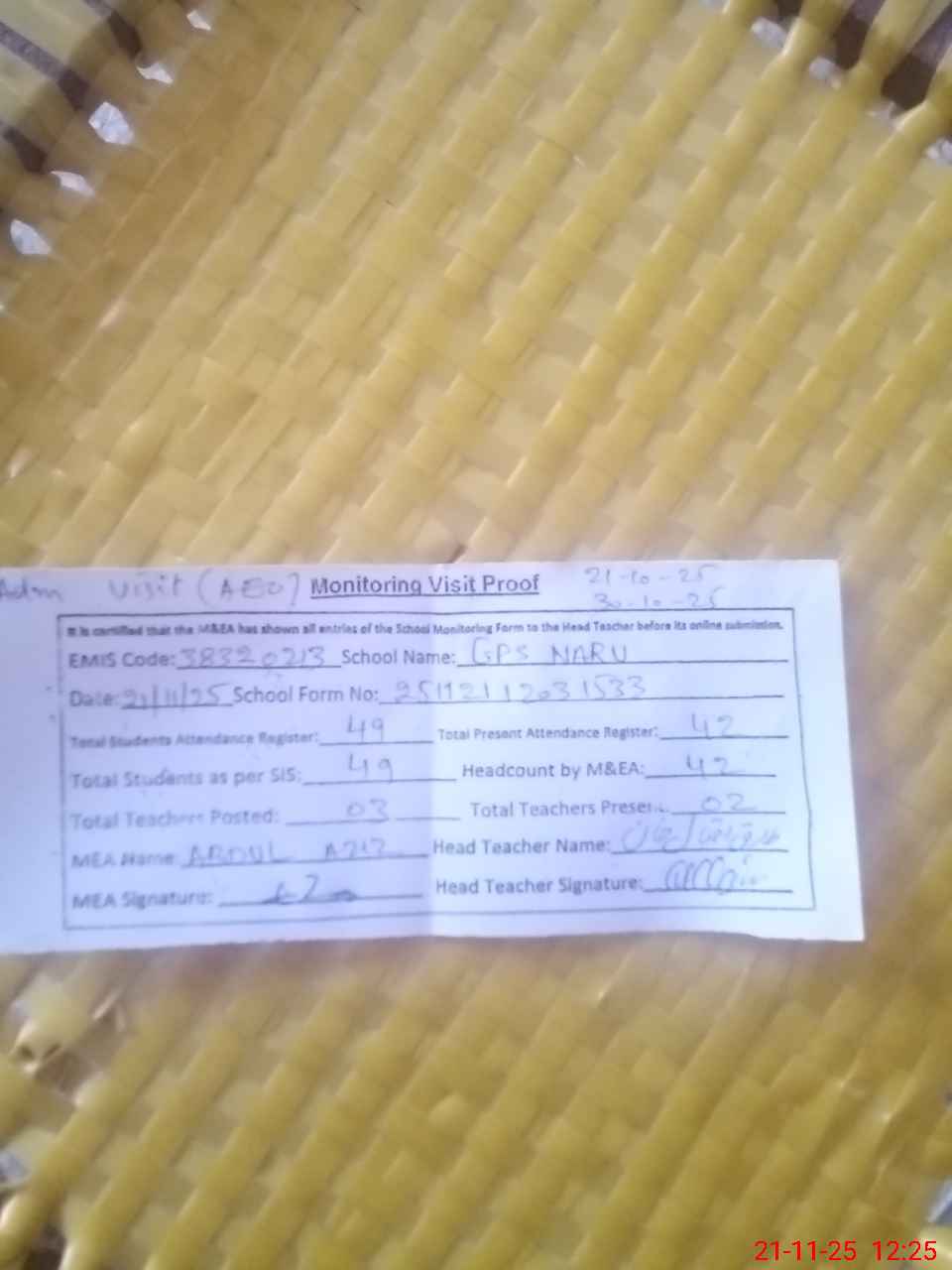 | EMIS Code: 38320213 | Name of School: GPS NARU | |||